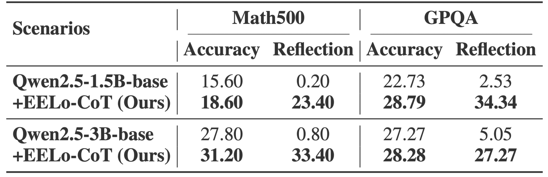 Reflection - self-check behavior increases from <10% to 70–90%.